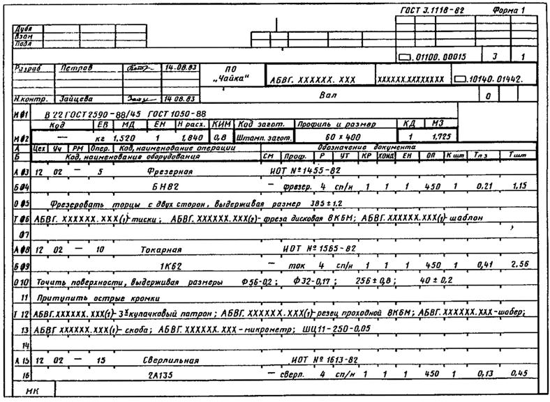 МК выполняет роль основного документа, в котором для всех операций принято операционное описание. Данный вариант следует применять для ЕТП специализированных по различным методам изготовления и ремонта, выполняемых без применения технологических режимов. Допускается данный вариант применять для ЕТП испытаний, упаковки, пропитки, настроечно-регулировочных работ и т.п. при условии указания данных по режимам в тексте описания операций (переходов) или после текста |