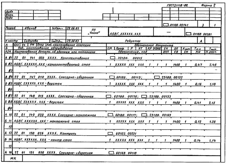 2.2.1.1. Маршрутное описание следует применять только для документов ЕТП, специализированных по технологическим методам, выполнение операций которых происходит без применения технологических режимов, например комплект документов ЕТП на слесарные, слесарно-сборочные работы.