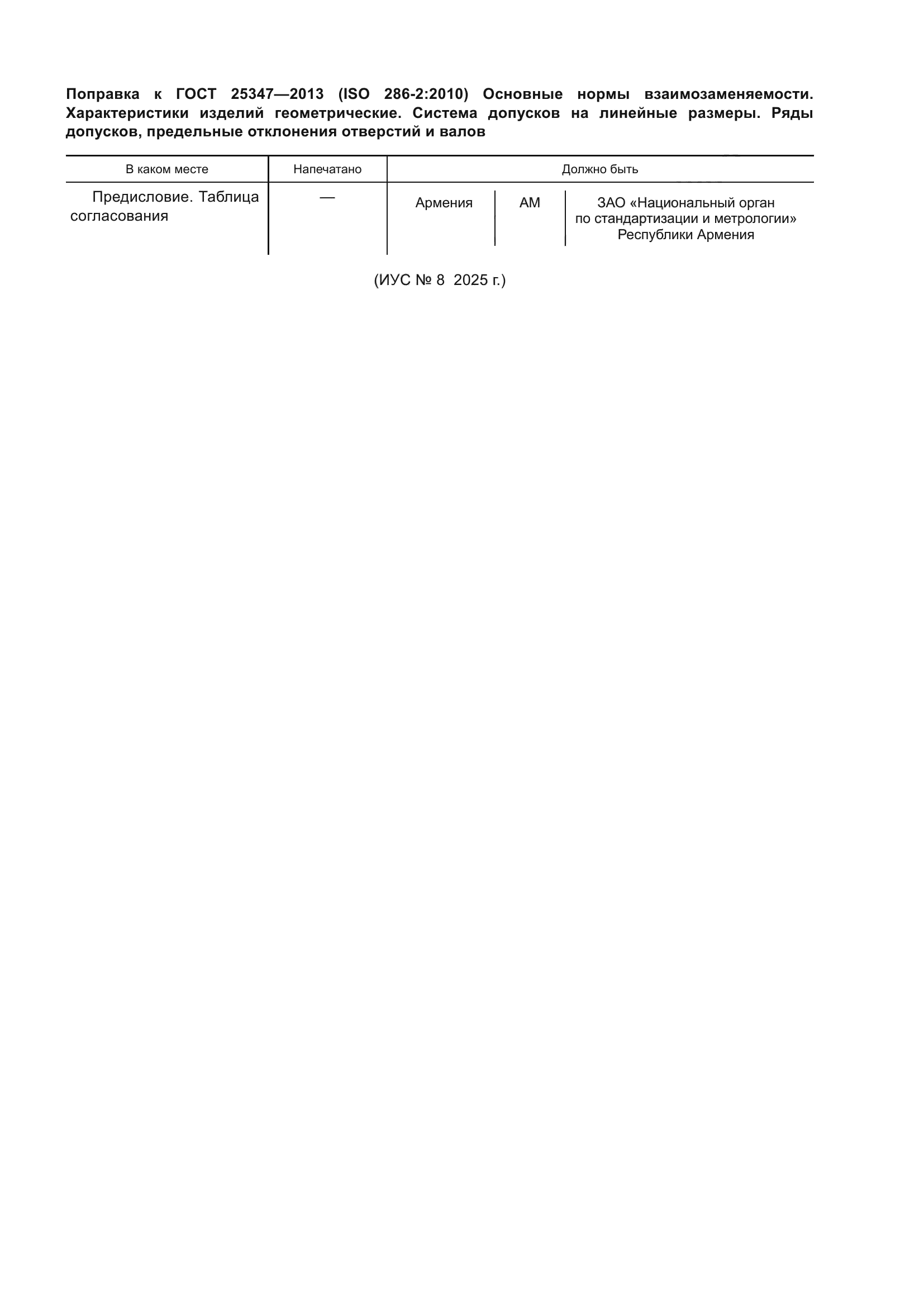 | Приложение №1: | Поправка к ГОСТ 25347-2013 |