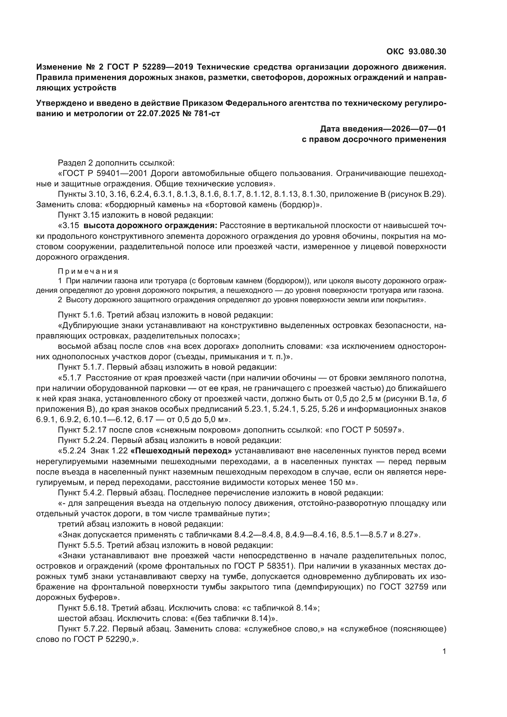 Изменение №1 к ГОСТ Р 52289-2019