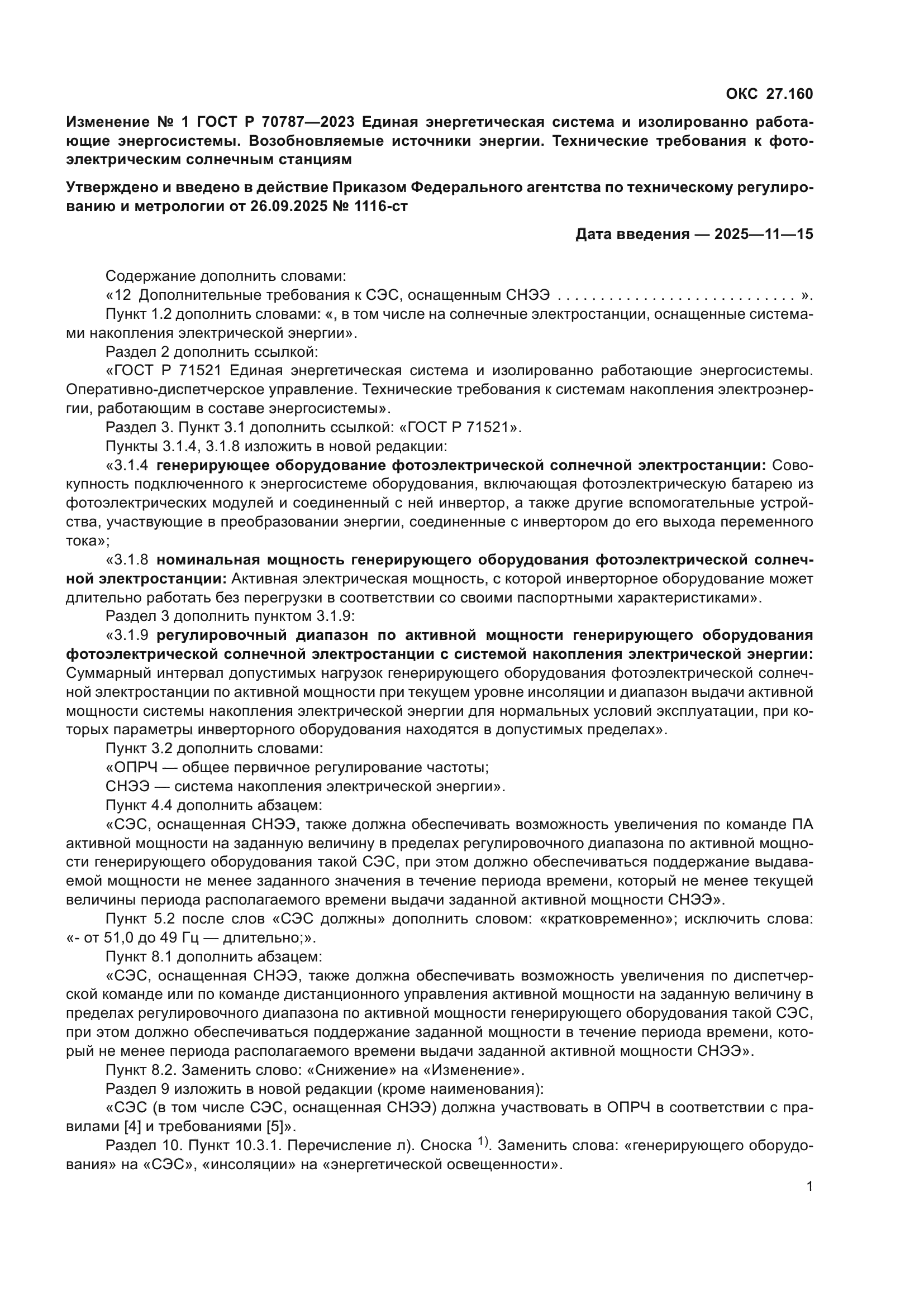 | Область применения: | Настоящий стандарт устанавливает технические требования к фотоэлектрическим солнечным электростанциям, предназначенным для производства электрической энергии при их работе в составе Единой энергетической системы России и технологически изолированных территориальных электроэнергетических систем. Настоящий стандарт распространяется на вновь вводимые, реконструируемые или технически перевооружаемые фотоэлектрические солнечные электростанции всех типов установленной мощностью 5 МВт и выше. Настоящий стандарт предназначен для применения собственниками и иными законными владельцами солнечных электростанций, иными организациями, осуществляющими их эксплуатацию, проектными, научно-исследовательскими и другими организациями, осуществляющими проектирование строительства, реконструкции, модернизации, технического перевооружения солнечных электростанций, разработку и согласование их схем выдачи мощности |