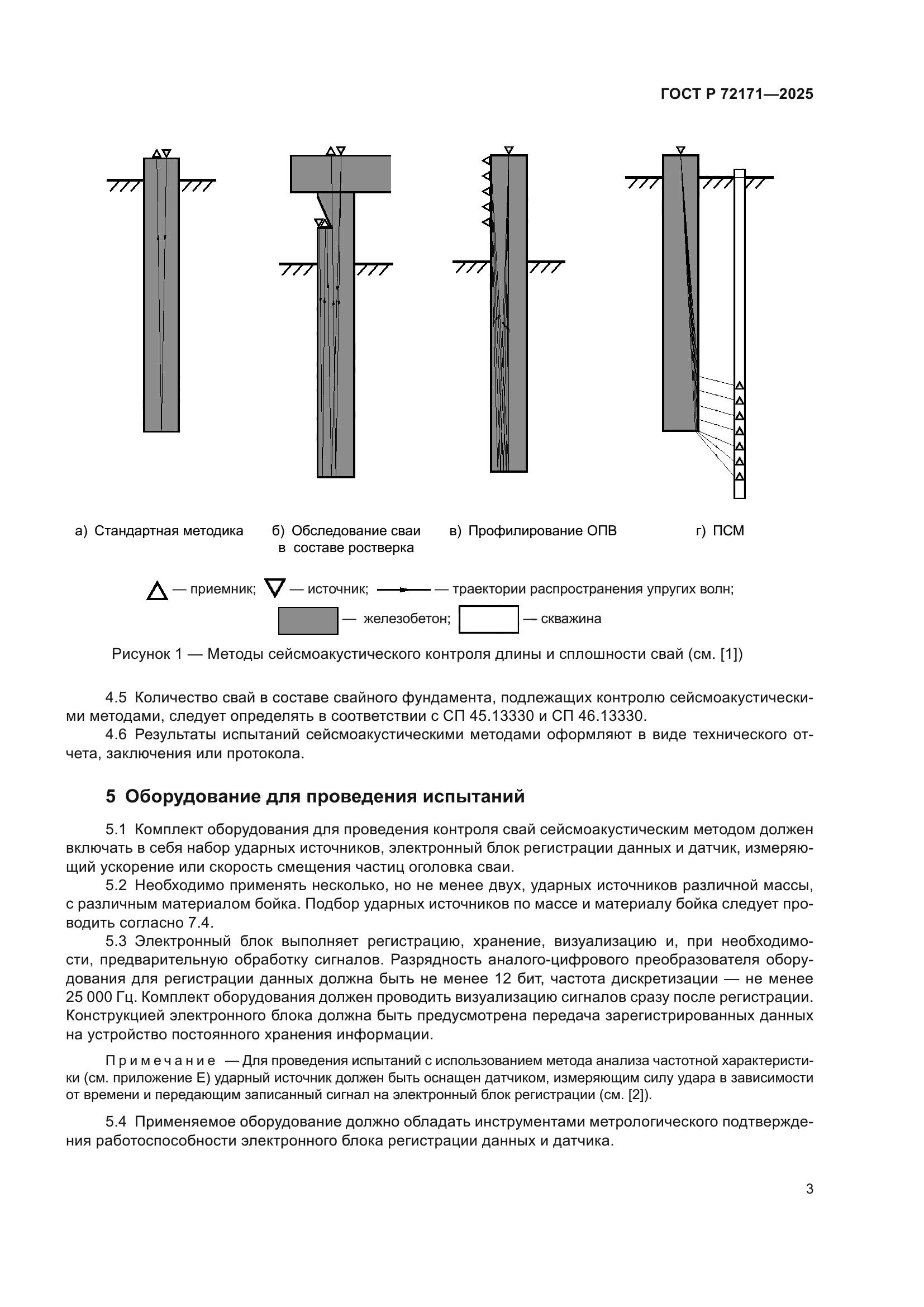 | Область применения: | Настоящий стандарт распространяется на железобетонные буронабивные, забивные, вдавливаемые, набивные сваи, баретты и устанавливает порядок проведения неразрушающего контроля длины и сплошности бетона свай сейсмоакустическими методами. Положения настоящего стандарта распространяются на исследования, выполняемые на этапе строительства или обследования конструкций |