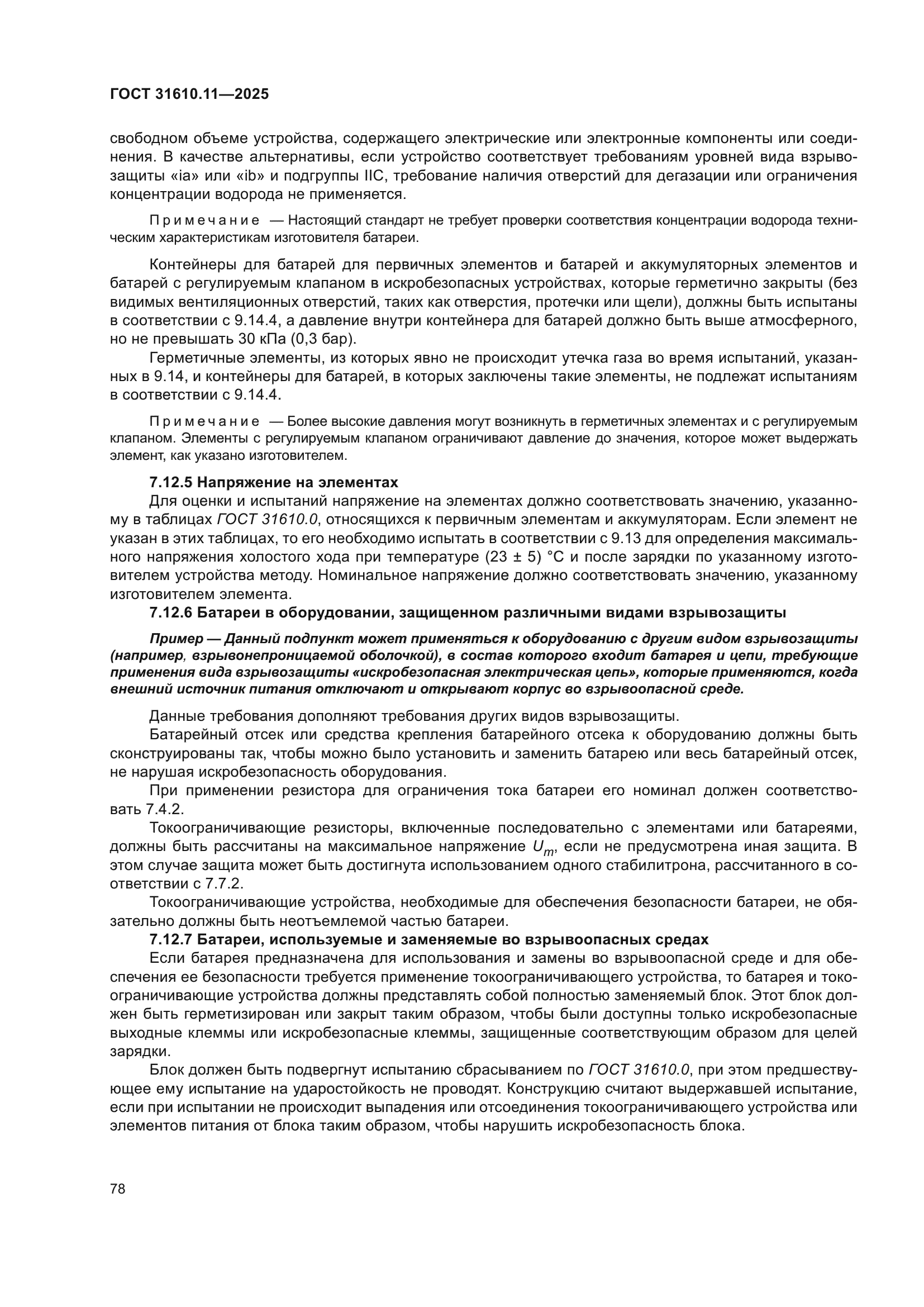 | Область применения: | Настоящий стандарт устанавливает требования к конструкции и испытанию искробезопасного устройства, предназначенного для применения во взрывоопасных средах, а также связанного устройства, предназначенного для подключения к искробезопасным цепям, которые проходят во взрывоопасные среды. Данный вид взрывозащиты применим к электрооборудованию, в котором электрические цепи не способны вызвать воспламенение окружающей взрывоопасной среды. Данный стандарт распространяется и на электрооборудование, в состав которого входят цепи, которые являются искробезопасными только в определенных условиях, например, при питании от искробезопасной батареи и отключенном питании сети. Настоящий стандарт также распространяется на электрооборудование или части электрооборудования, находящиеся вне взрывоопасной среды или имеющие другой вид взрывозащиты из перечисленных в ГОСТ 31610.0, в тех случаях, когда искробезопасность электрических цепей во взрывоопасной среде может зависеть от конструкции и исполнения такого электрооборудования или его частей. С помощью данного стандарта оценивают возможность применения во взрывоопасных средах электрических цепей, подвергающихся воздействию взрывоопасной среды |