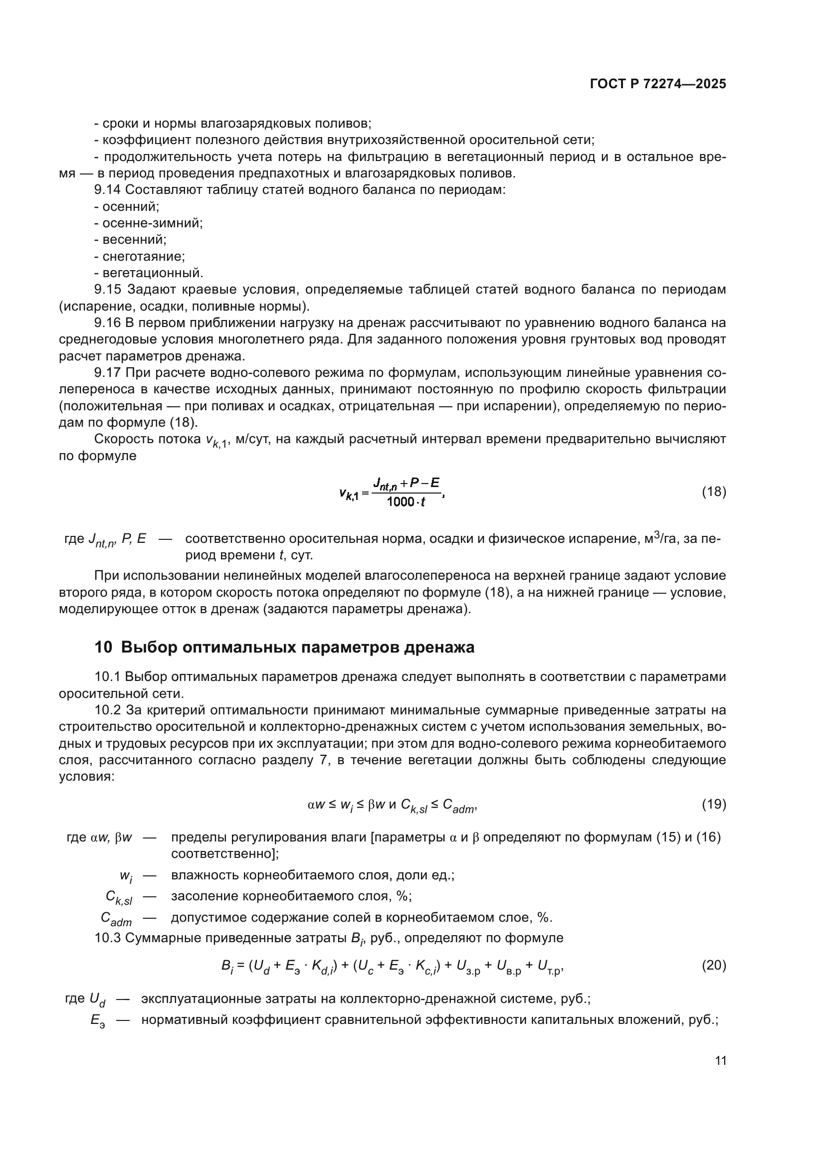 | Область применения: | Настоящий стандарт устанавливает нормы проектирования дренажа на орошаемых землях. Настоящий стандарт распространяется на вновь осваиваемые засоленные или склонные к засолению и заболачиванию земли, а также на существующие оросительные системы, требующие мелиоративного усовершенствования. Настоящий стандарт не распространяется на зоны избыточного увлажнения, промышленных площадок и населенных пунктов |