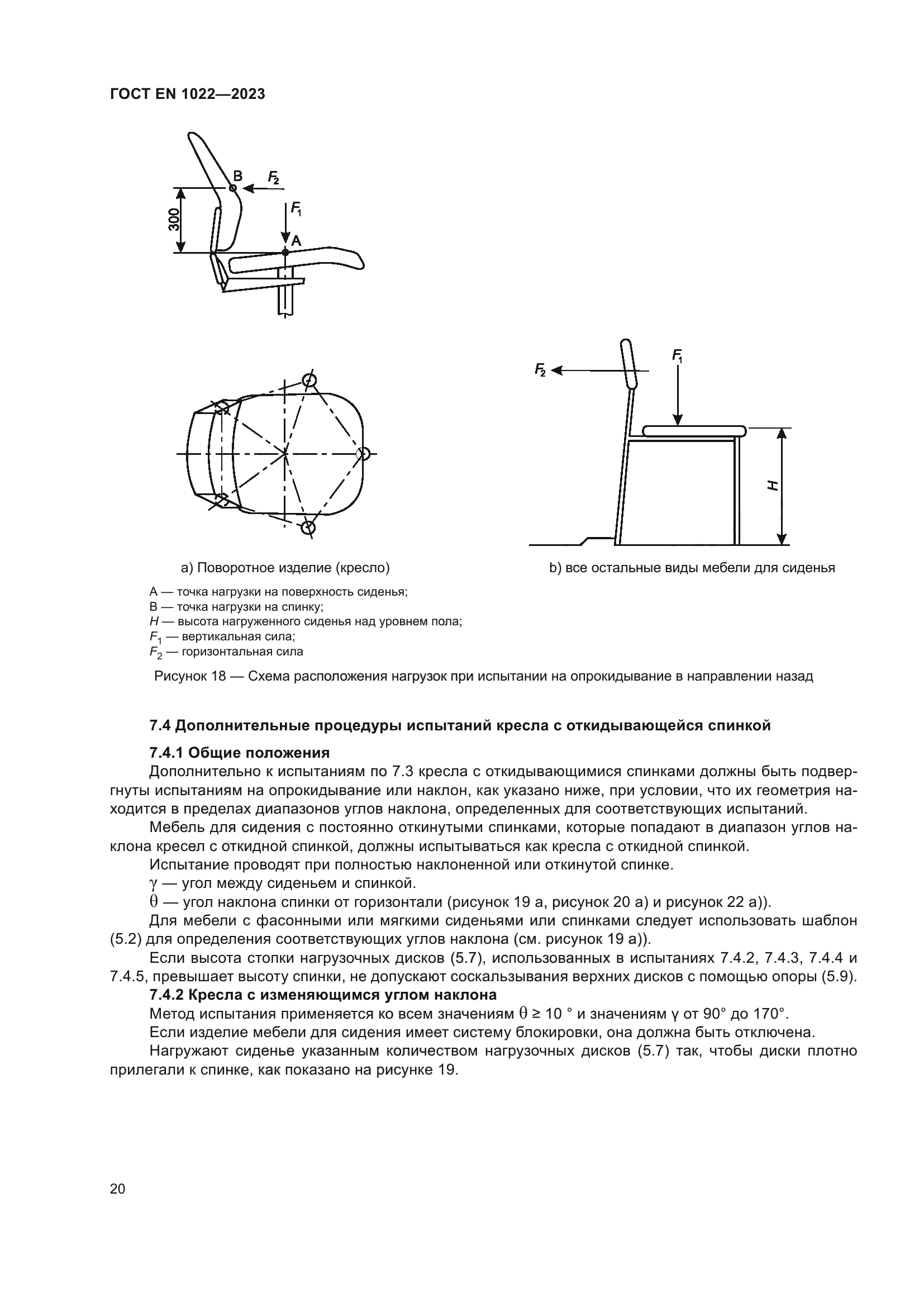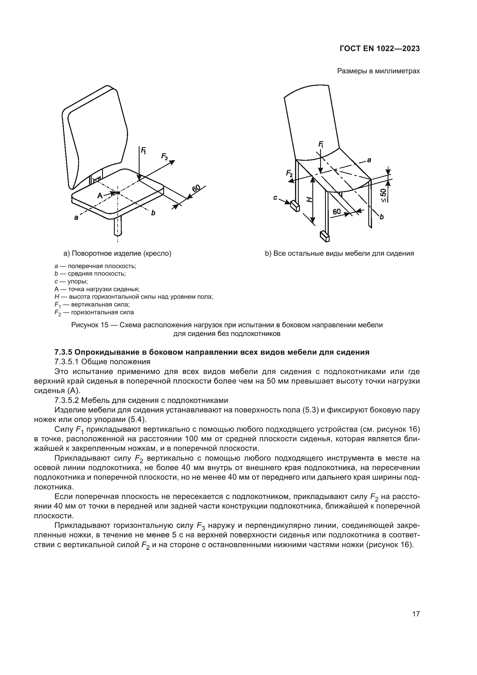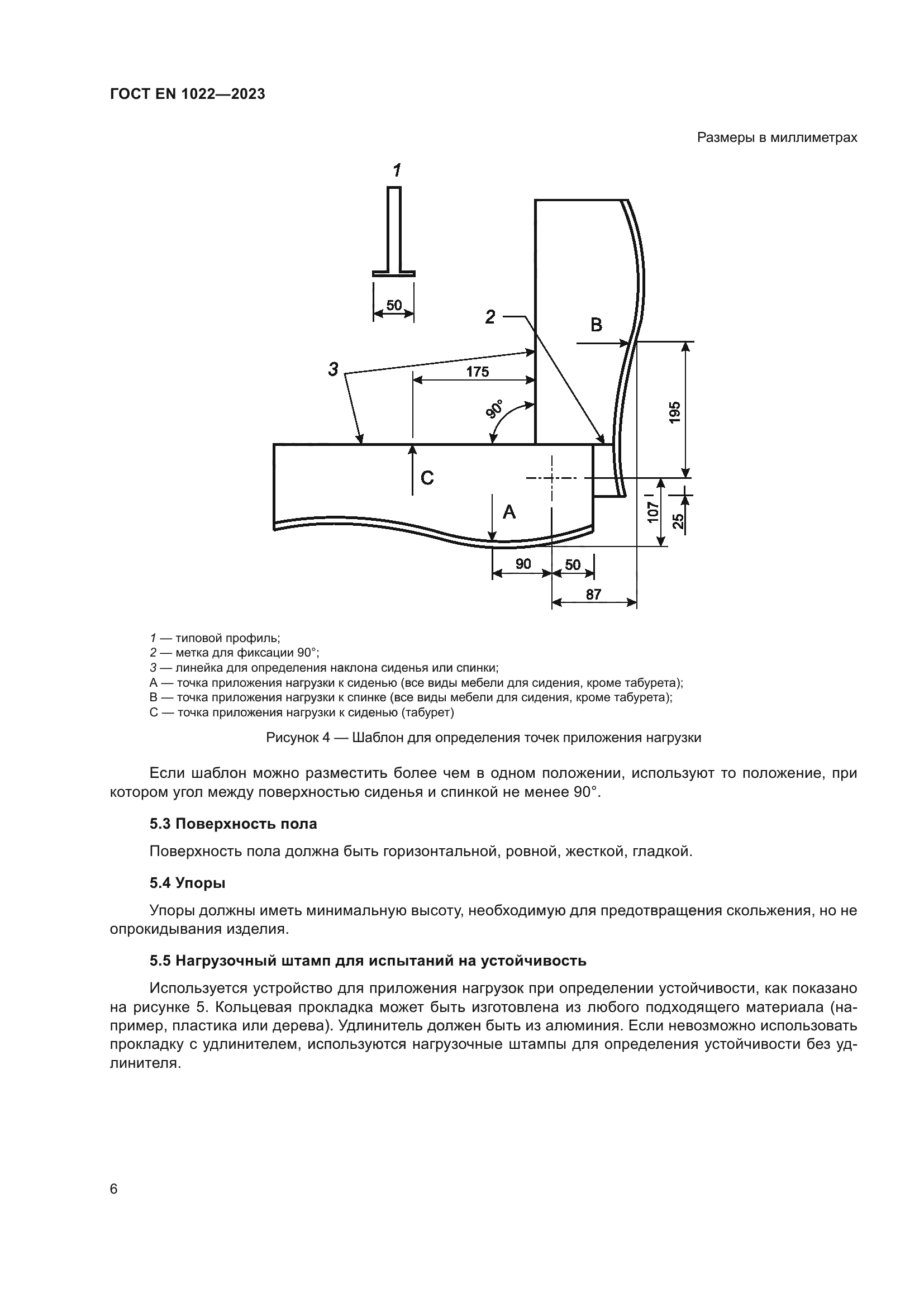 | Область применения: | Настоящий стандарт устанавливает методы испытаний и требования для определения устойчивости всех типов мебели для сидения для взрослых весом до 110 кг без учета использования материалов, дизайна/конструкции или процесса производства. Приведенные методы испытаний можно использовать как для мебели для сидения, предназначенной для детей, так и мебели для сидения, предназначенной для взрослых с большим весом путем изменения испытательных нагрузок и точек нагрузки |