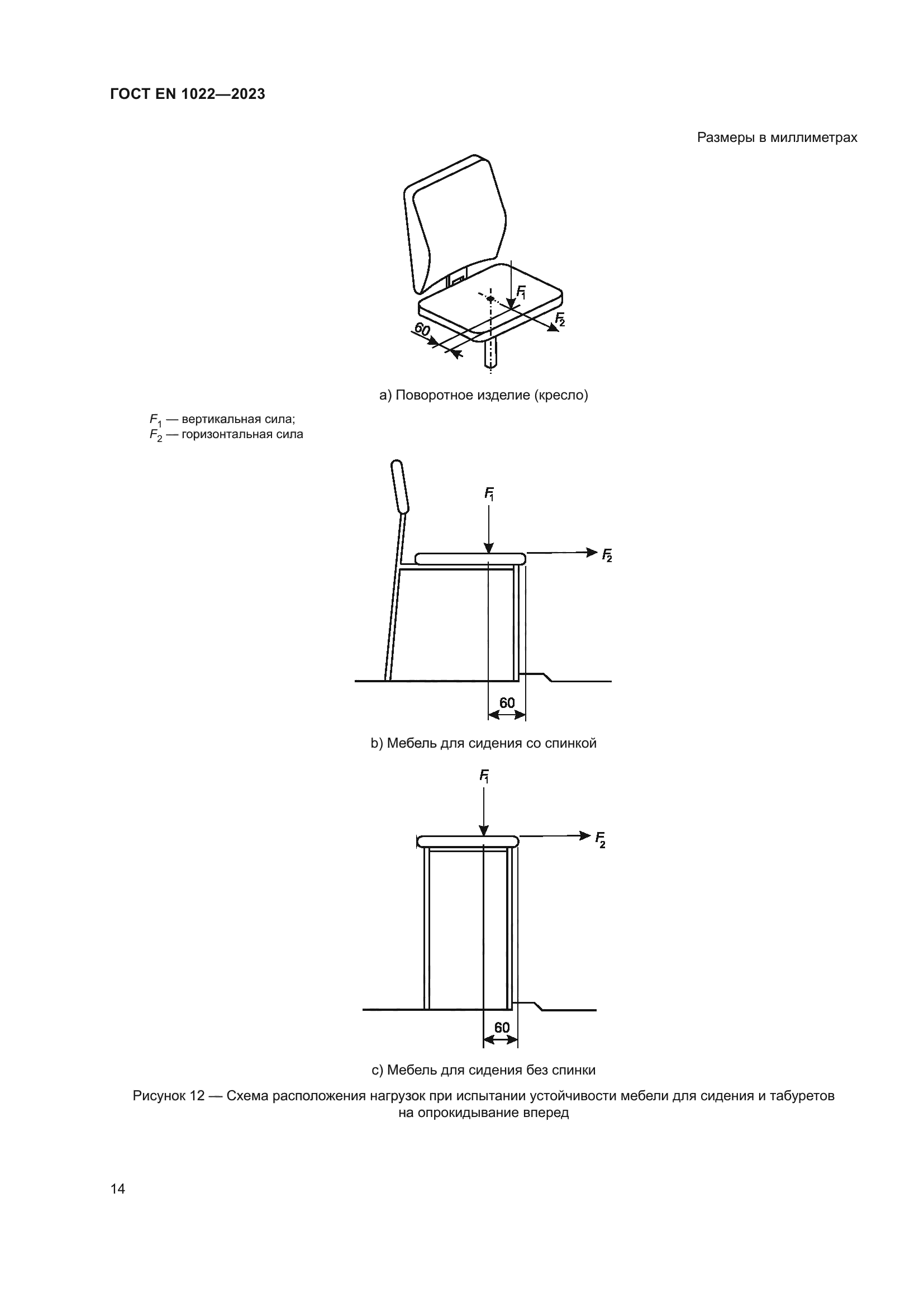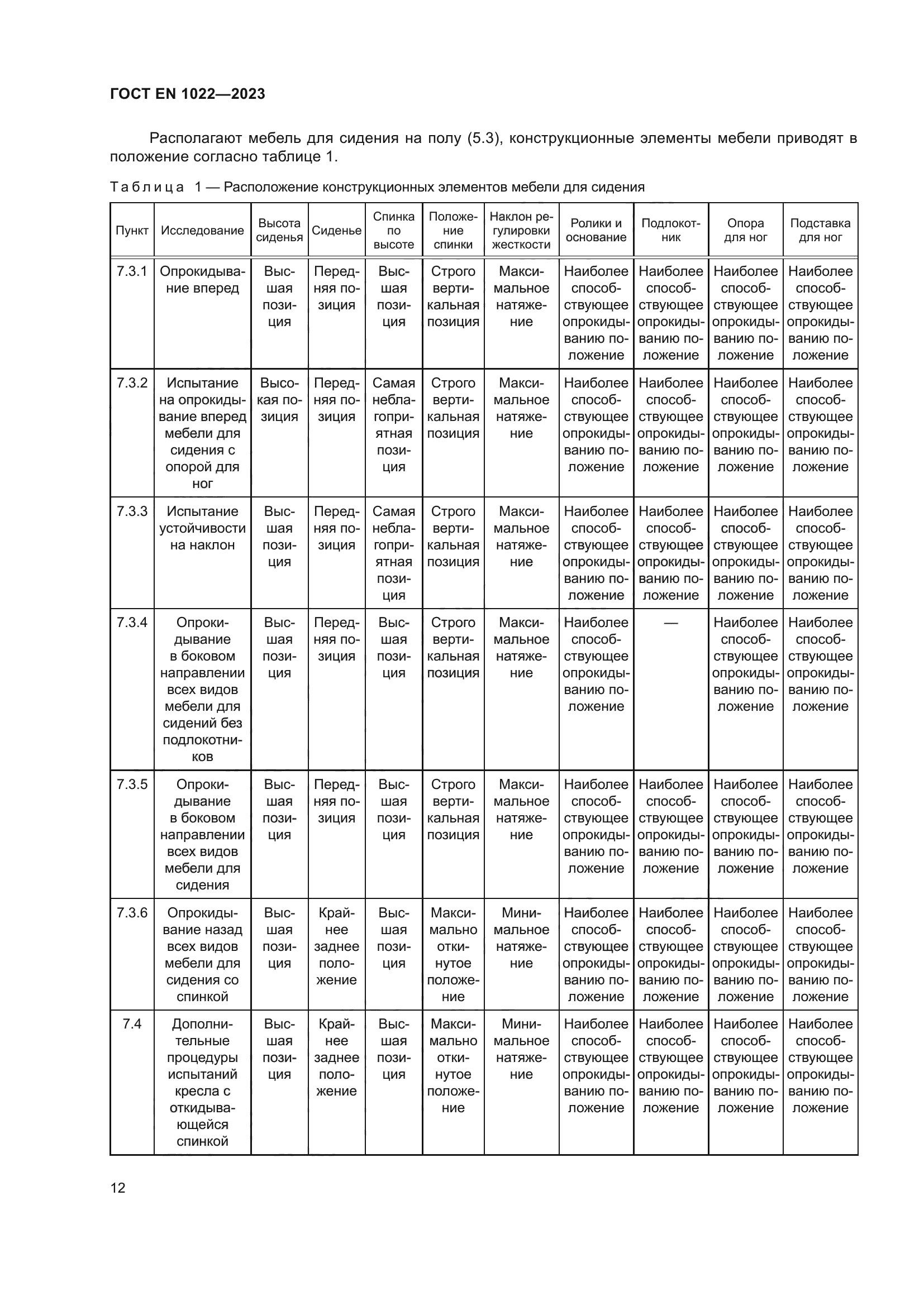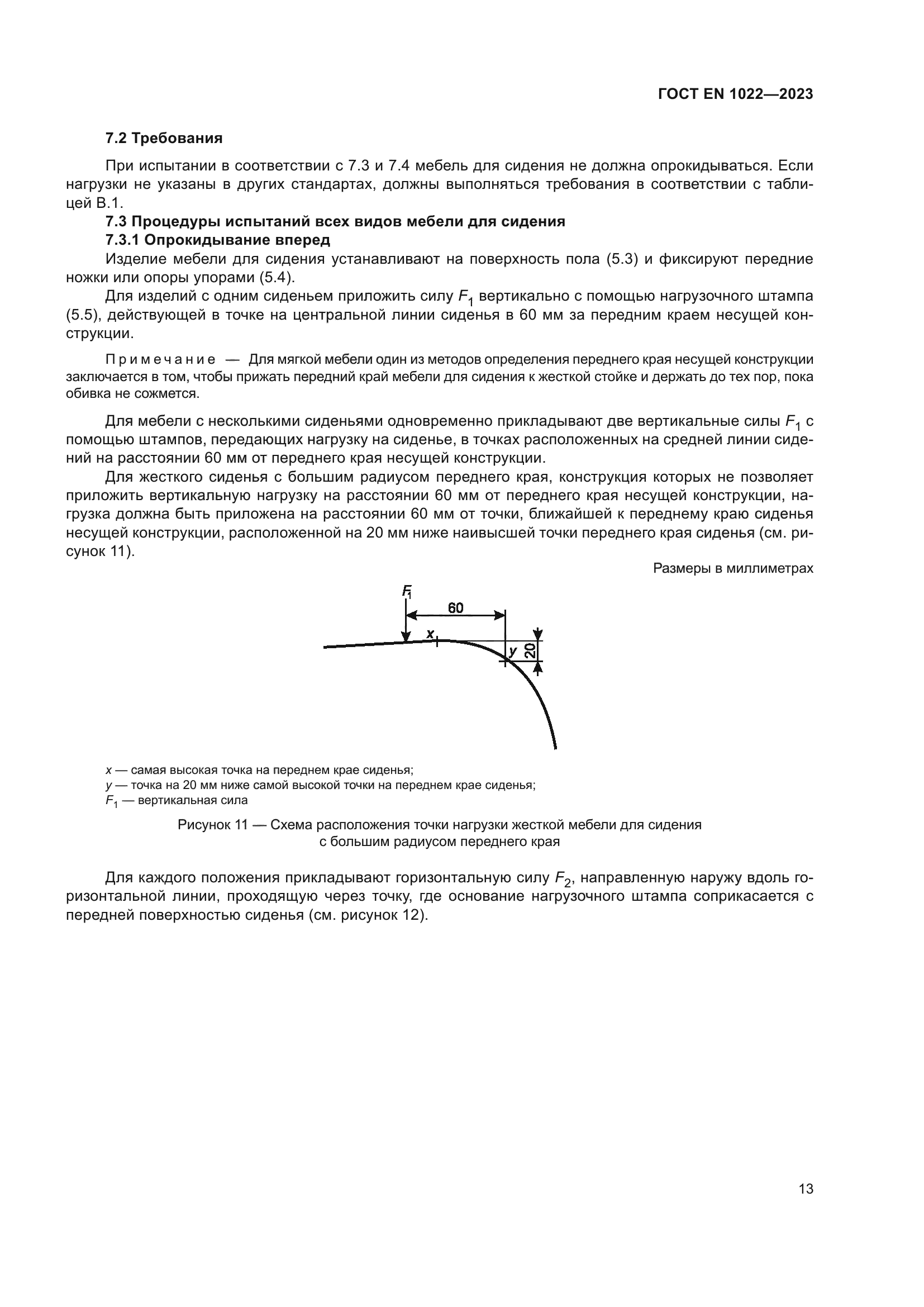 | Область применения: | Настоящий стандарт устанавливает методы испытаний и требования для определения устойчивости всех типов мебели для сидения для взрослых весом до 110 кг без учета использования материалов, дизайна/конструкции или процесса производства. Приведенные методы испытаний можно использовать как для мебели для сидения, предназначенной для детей, так и мебели для сидения, предназначенной для взрослых с большим весом путем изменения испытательных нагрузок и точек нагрузки |