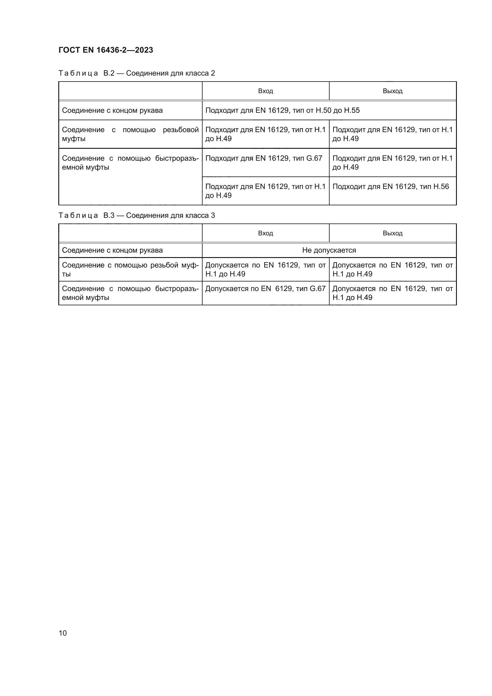 | Область применения: | Настоящий стандарт устанавливает характеристики и эксплуатационные требования к соединениям гибких труб и рукавов, изготовленных из резины или пластмассы в соответствии с EN 16436-1:2014+A2:2018, для использования при аналогичных условиях. Все типы соединений приведены в приложении B. Настоящий стандарт распространяется на специальные соединения, требования к которым не установлены в других стандартах (например EN 16129) |