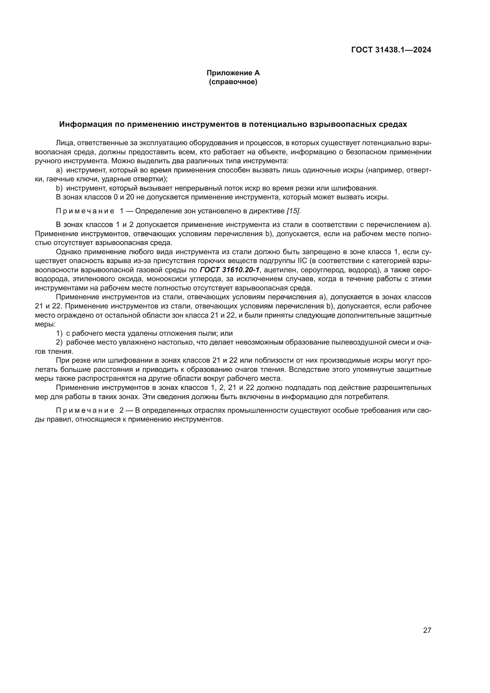 | Нормативные ссылки: | ГОСТ ISO 13849-1; ГОСТ 31610.0; ГОСТ 31610.10; ГОСТ 31610.10-1-2022; ГОСТ 31610.10-1; ГОСТ 31610.10-2; ГОСТ 31610.20-1; ГОСТ 31610.20-2; ГОСТ 31610.28; ГОСТ 31610.32-1; ГОСТ 31610.40; ГОСТ 32407;ГОСТ IEC 60079-14;ГОСТ IEC 61340-4-4;ГОСТ IEC 62127-1;ГОСТ ISO/DIS 80079-37 |