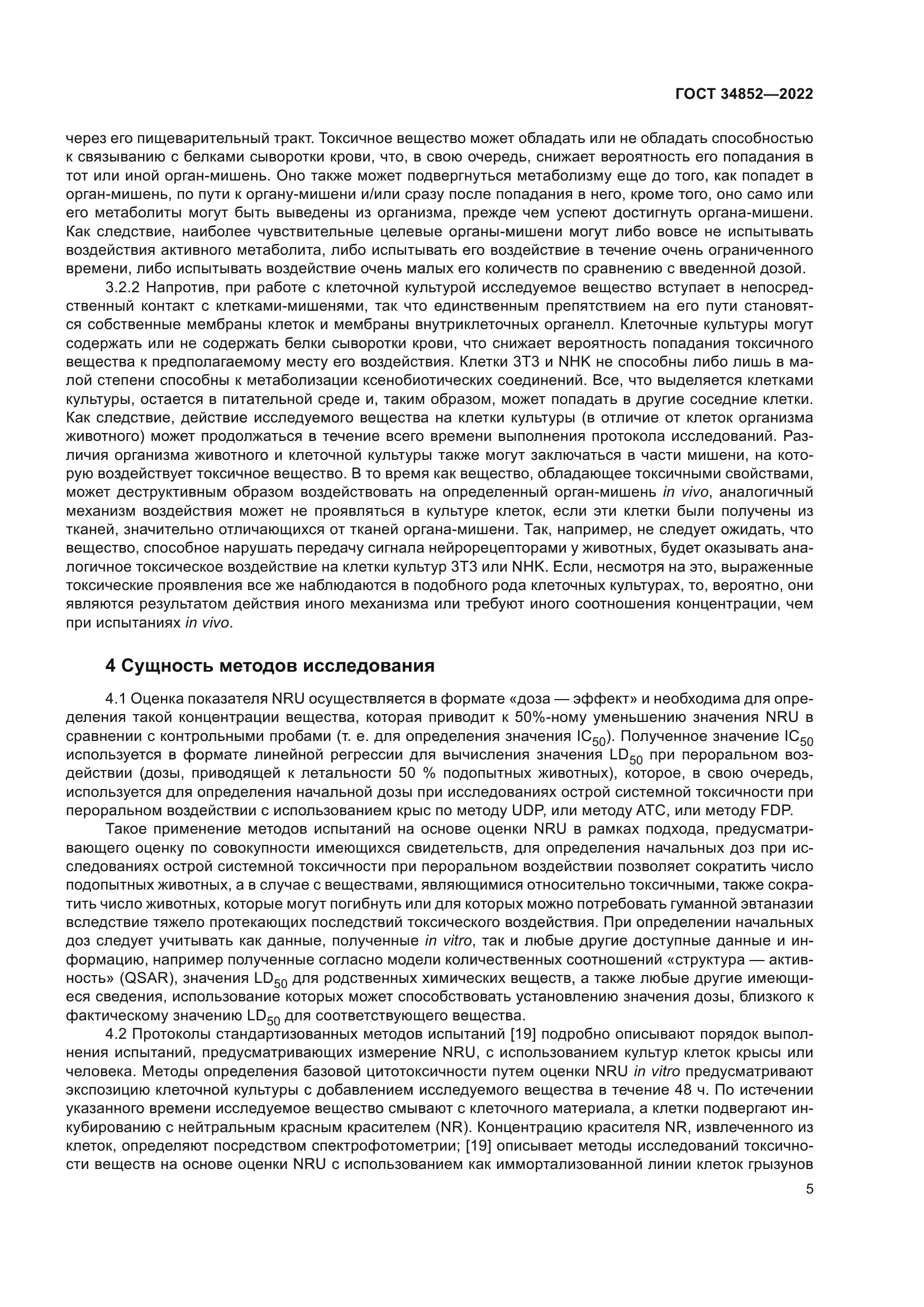 | Область применения: | Настоящий стандарт устанавливает методы определения базовой цитотоксичности исследуемых веществ in vitro путем определения поглощения нейтрального красного (NRU) и вычислений с учетом данных, полученных в условиях in vitro, оптимальных значений начальной дозы, которые впоследствии могут быть использованы для проведения исследований острой пероральной системной токсичности in vivo |