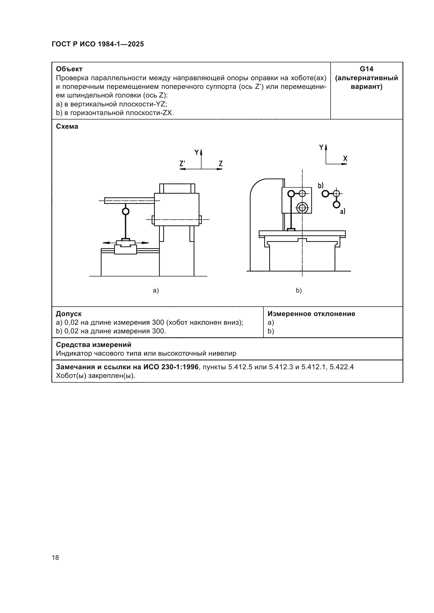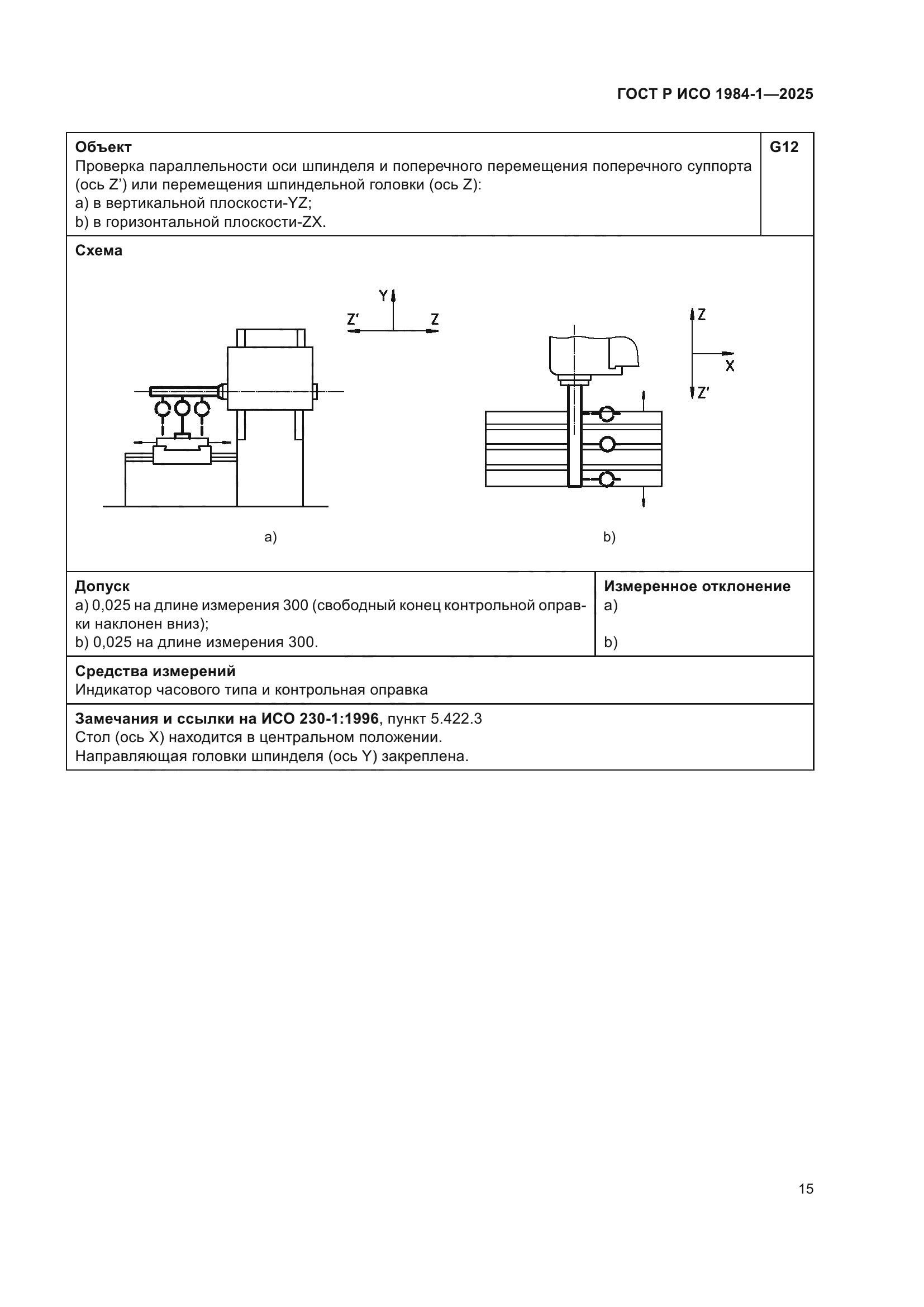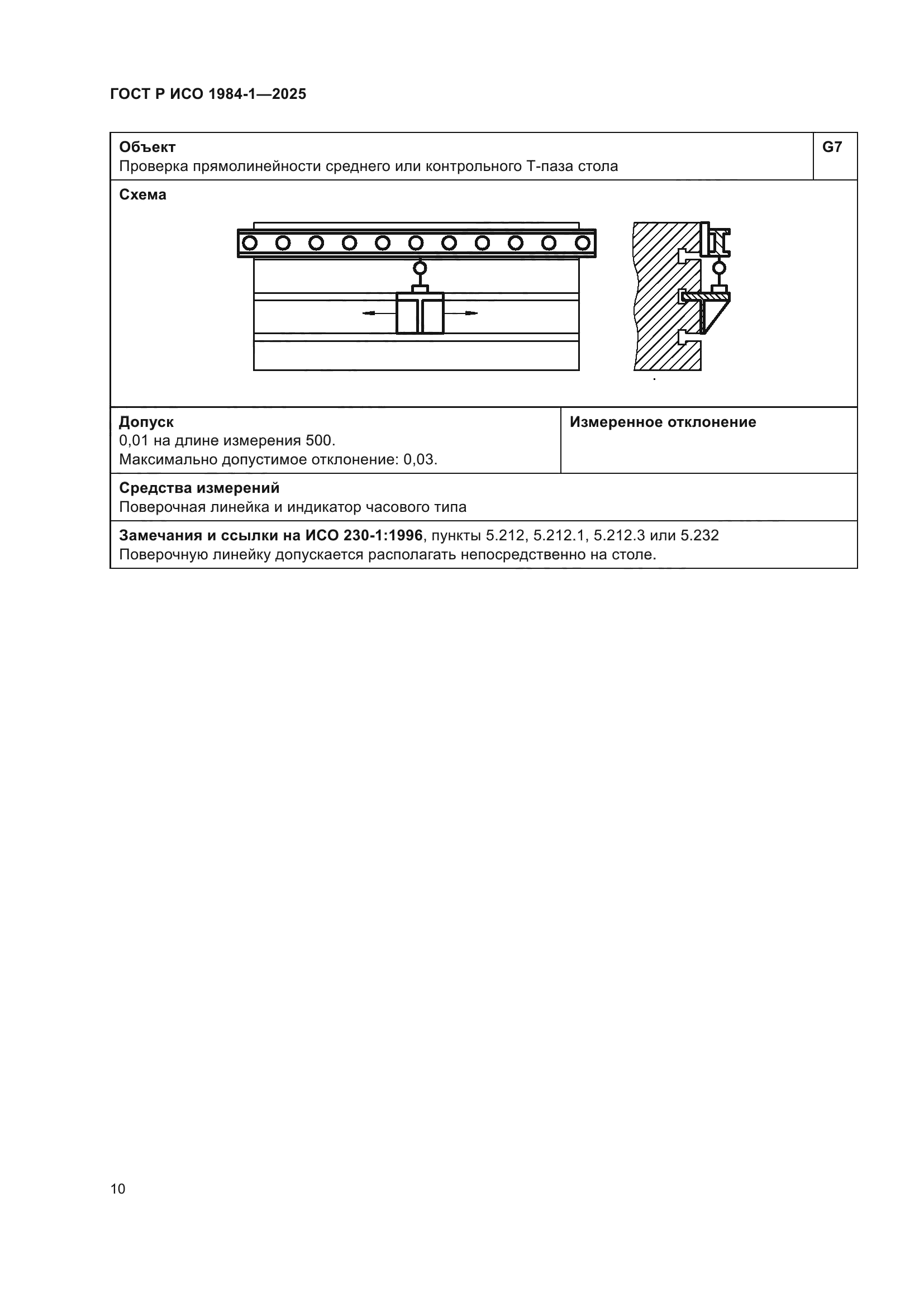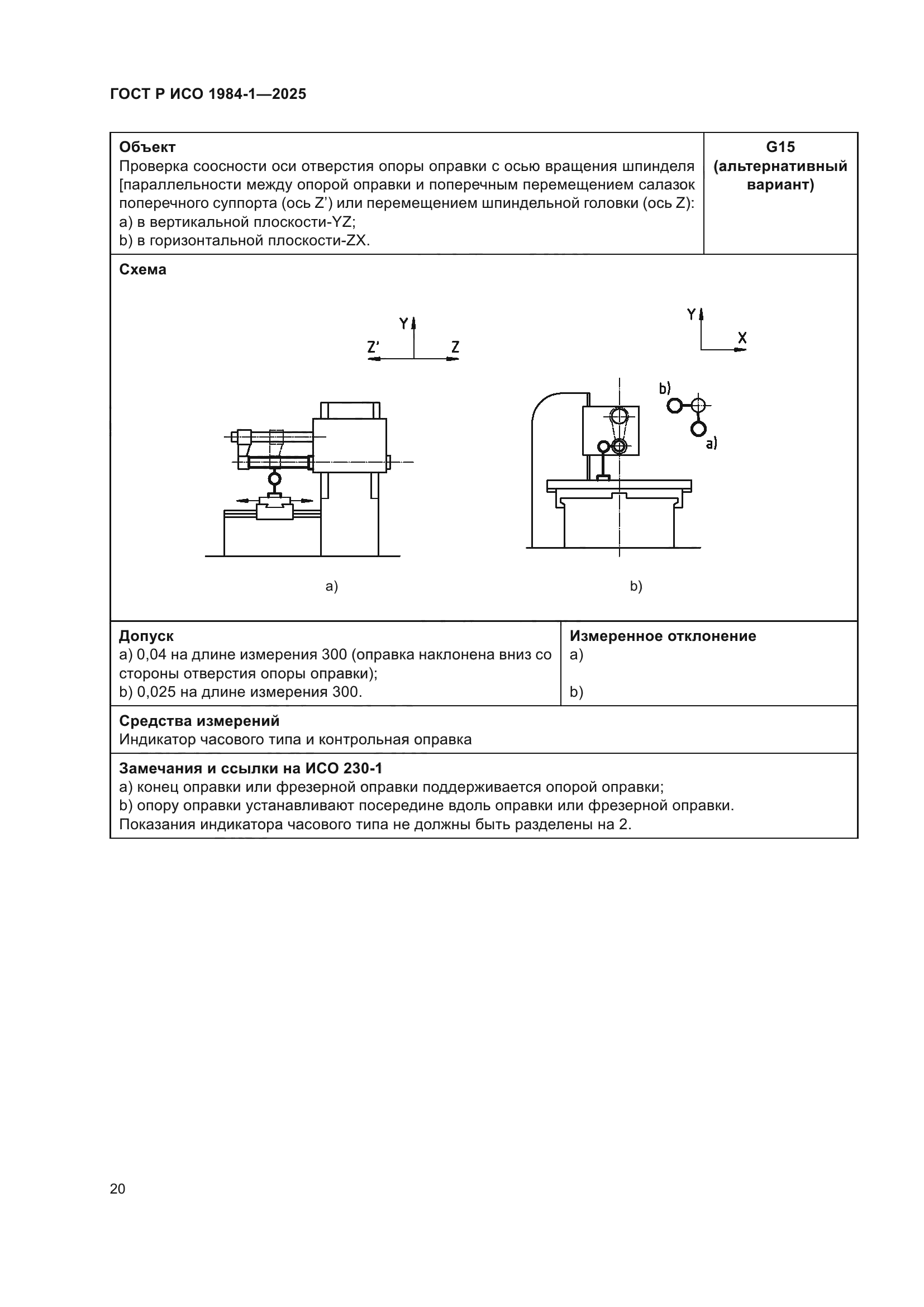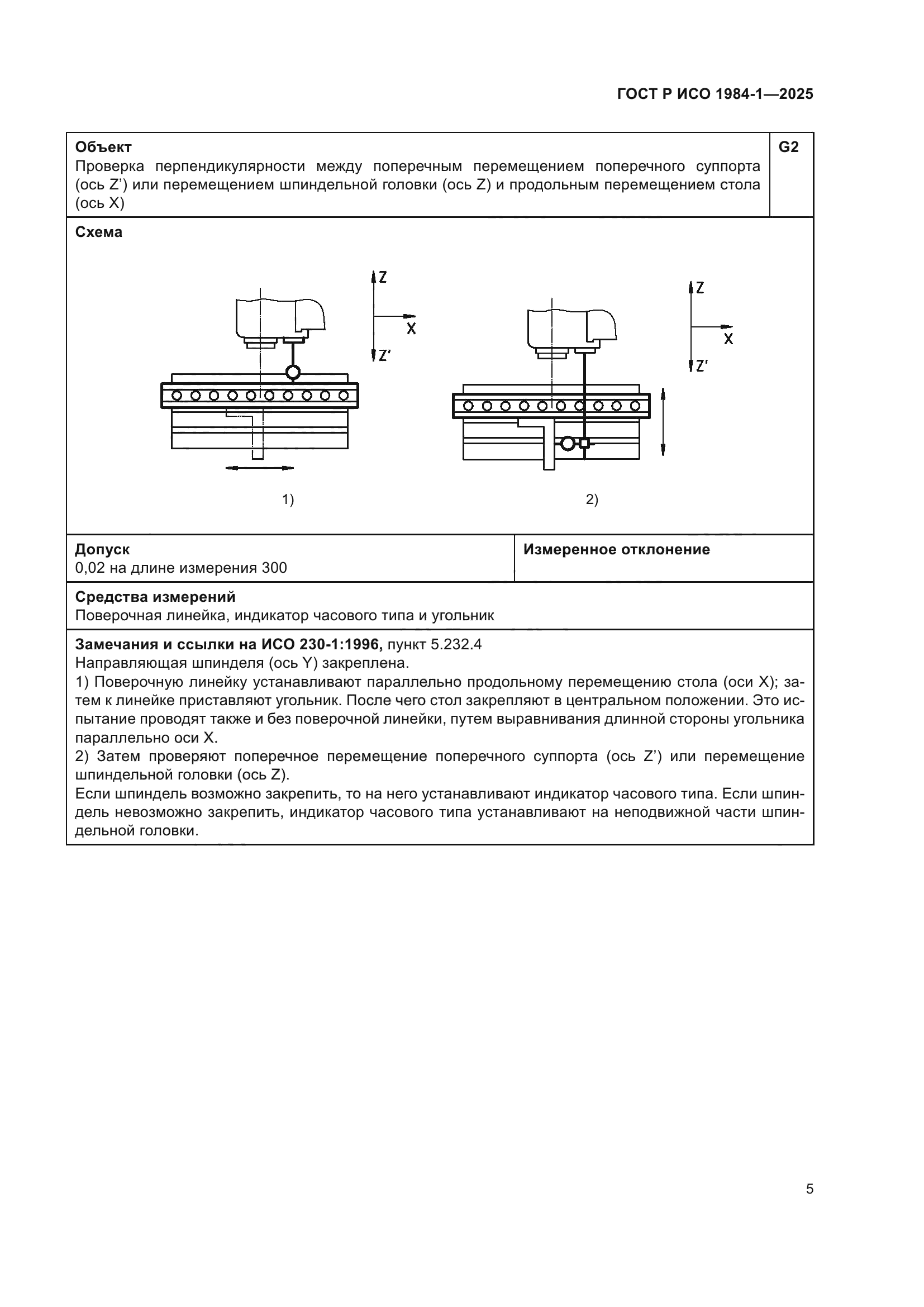 | Название рус.: | Условия испытаний фрезерных станков с ручным управлением со столом постоянной высоты. Проверка точности. Часть 1. Станки с горизонтальным шпинделем | | Название англ.: | Test conditions for manually controlled milling machines with table of fixed height. Testing of the accuracy. Part 1. Machines with horizontal spindle | | Дата актуализации текста: | 01.01.2026 | | Дата актуализации описания: | 01.01.2026 | | Дата издания: | 21.11.2025 | | Дата введения: | 01.07.2026 | | Аутентичен стандартам: | ISO 1984-1:2001 | | Нормативные ссылки: | ISO 230-1:2012 | | Область применения: | Настоящий стандарт совместно с ИСО 230-1 устанавливает требования к испытаниям по проверке геометрической точности и к испытаниям при механической обработке фрезерных станков общего назначения и нормальной точности со столом фиксированной высоты и горизонтальным шпинделем. Настоящий стандарт также устанавливает соответствующие допуски для описанных выше испытаний. В настоящем стандарте рассматриваются только вопросы проверки точности станка. Настоящий стандарт не применяется ни к испытаниям при работе станка (вибрации, ненормальные шумы, скачкообразные движения компонентов станка и т.д.), ни к характеристикам станка (скорости, подачи и т.д.), которые проверяют до начала испытания точности. Настоящий стандарт определяет терминологию, используемую для обозначения основных элементов станка, и указывает на обозначение осей в соответствии с ИСО 841 [1] | |
