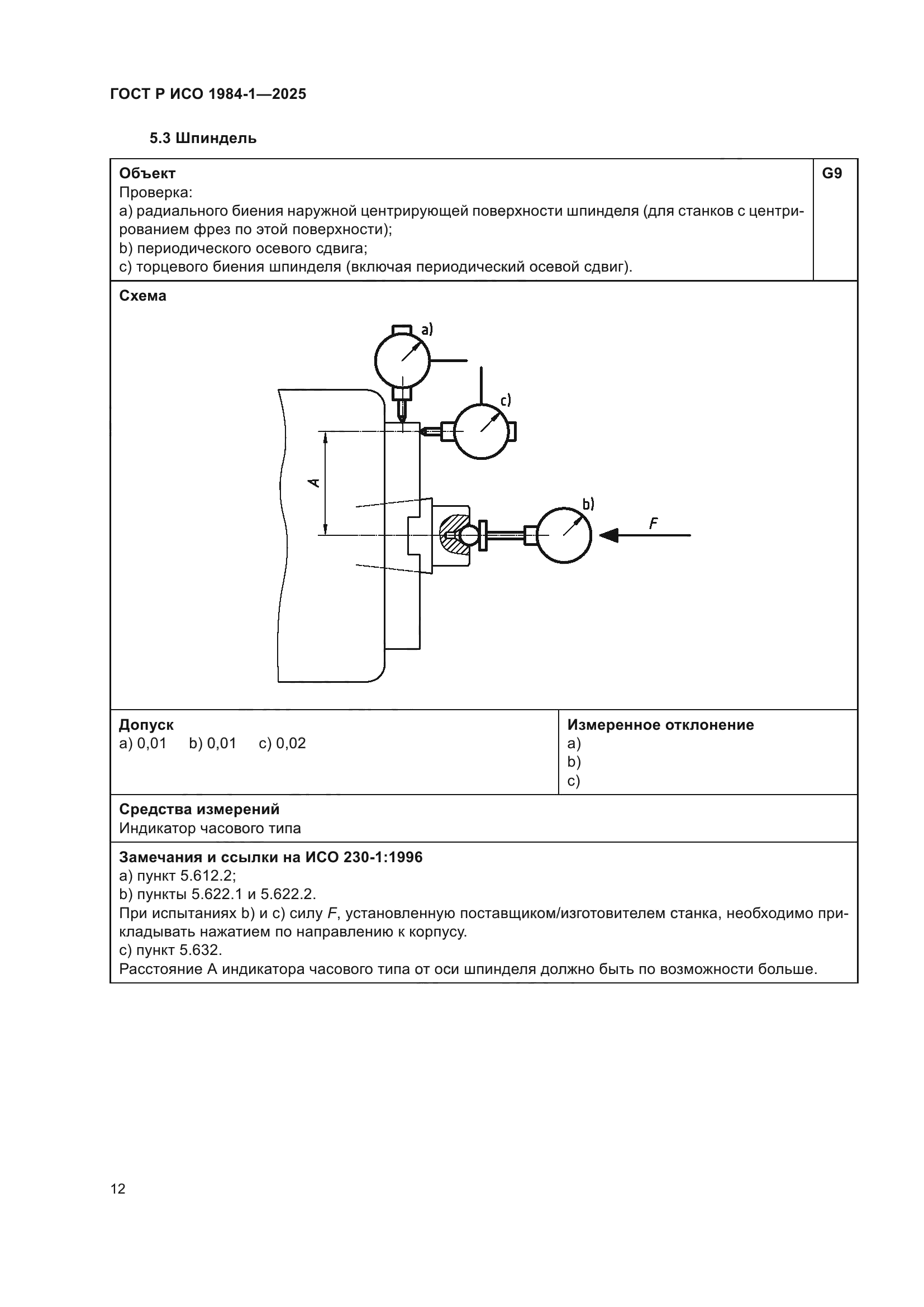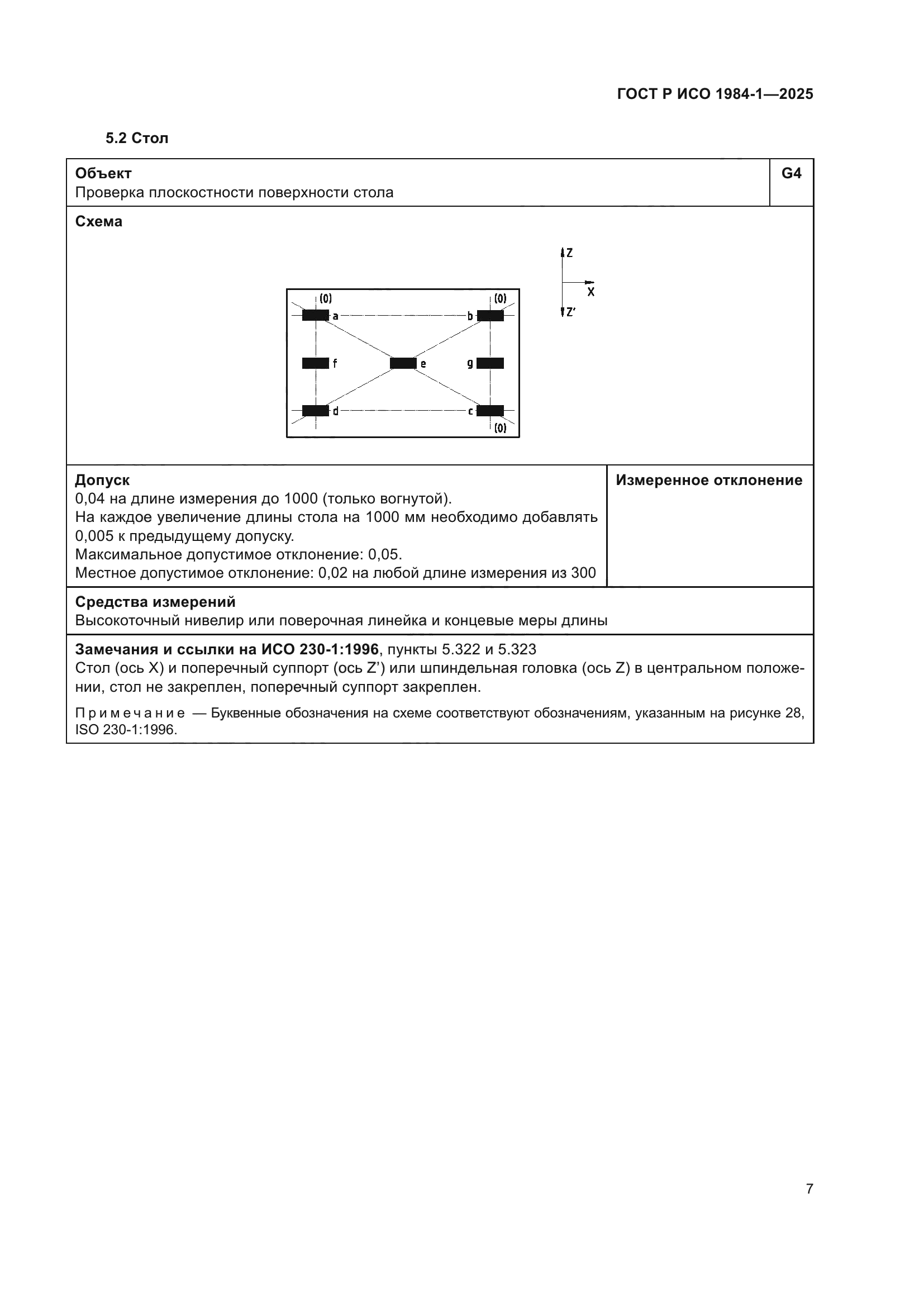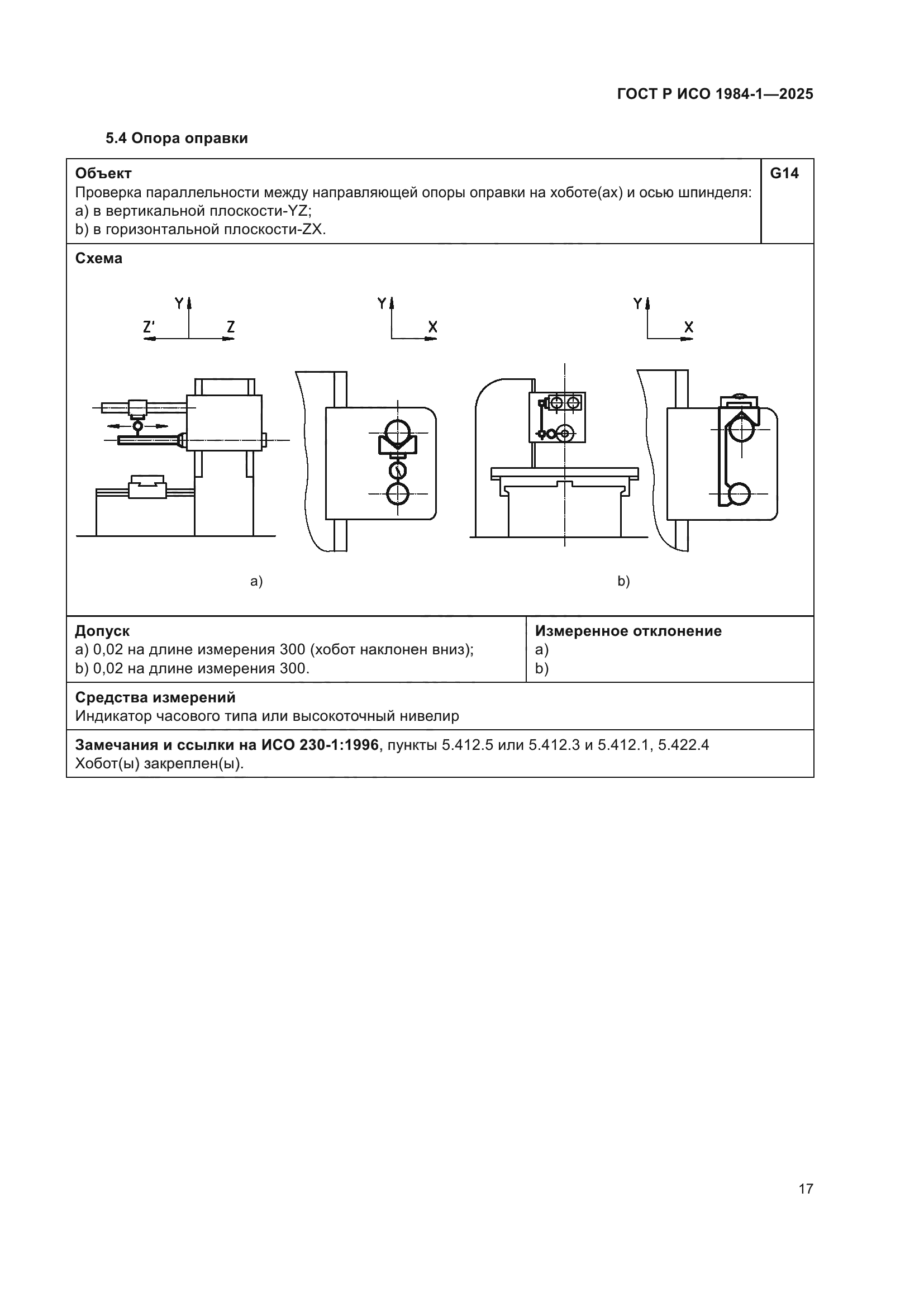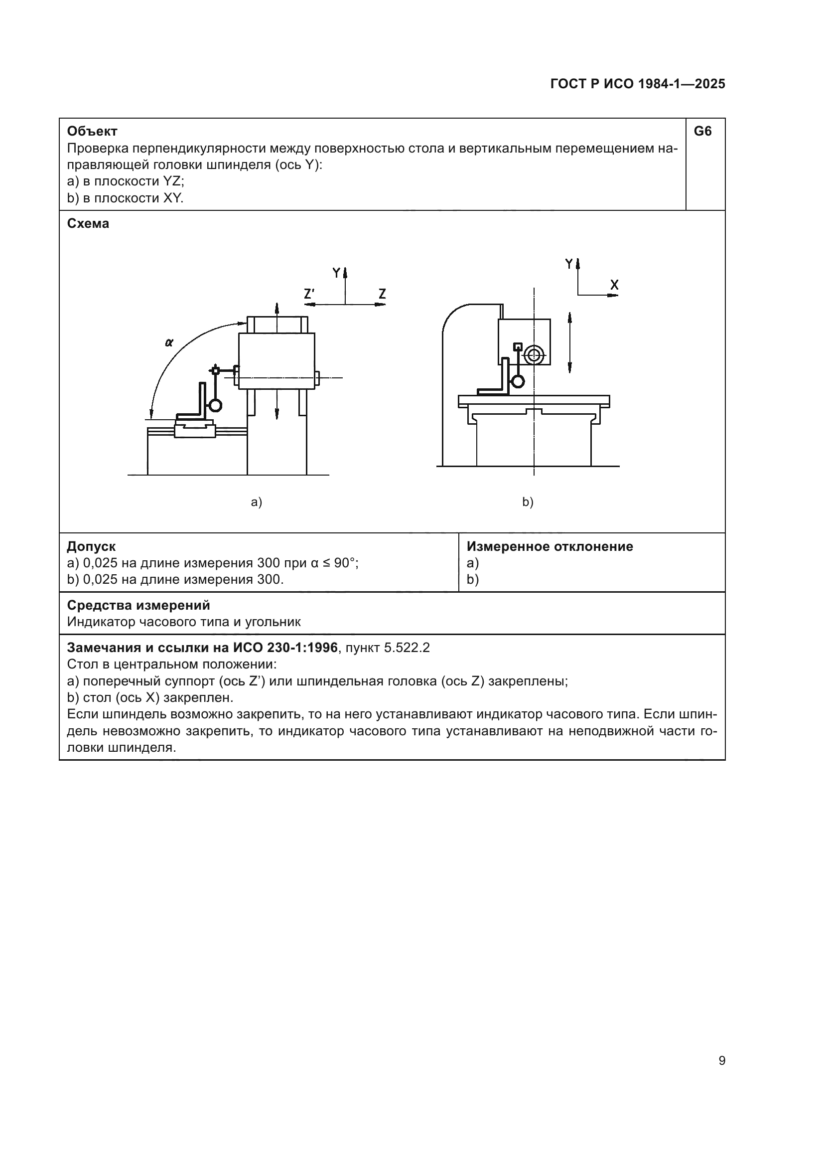 | Название рус.: | Условия испытаний фрезерных станков с ручным управлением со столом постоянной высоты. Проверка точности. Часть 1. Станки с горизонтальным шпинделем | | Название англ.: | Test conditions for manually controlled milling machines with table of fixed height. Testing of the accuracy. Part 1. Machines with horizontal spindle | | Дата актуализации текста: | 01.01.2026 | | Дата актуализации описания: | 01.01.2026 | | Дата издания: | 21.11.2025 | | Дата введения: | 01.07.2026 | | Аутентичен стандартам: | ISO 1984-1:2001 | | Нормативные ссылки: | ISO 230-1:2012 | | Область применения: | Настоящий стандарт совместно с ИСО 230-1 устанавливает требования к испытаниям по проверке геометрической точности и к испытаниям при механической обработке фрезерных станков общего назначения и нормальной точности со столом фиксированной высоты и горизонтальным шпинделем. Настоящий стандарт также устанавливает соответствующие допуски для описанных выше испытаний. В настоящем стандарте рассматриваются только вопросы проверки точности станка. Настоящий стандарт не применяется ни к испытаниям при работе станка (вибрации, ненормальные шумы, скачкообразные движения компонентов станка и т.д.), ни к характеристикам станка (скорости, подачи и т.д.), которые проверяют до начала испытания точности. Настоящий стандарт определяет терминологию, используемую для обозначения основных элементов станка, и указывает на обозначение осей в соответствии с ИСО 841 [1] | |