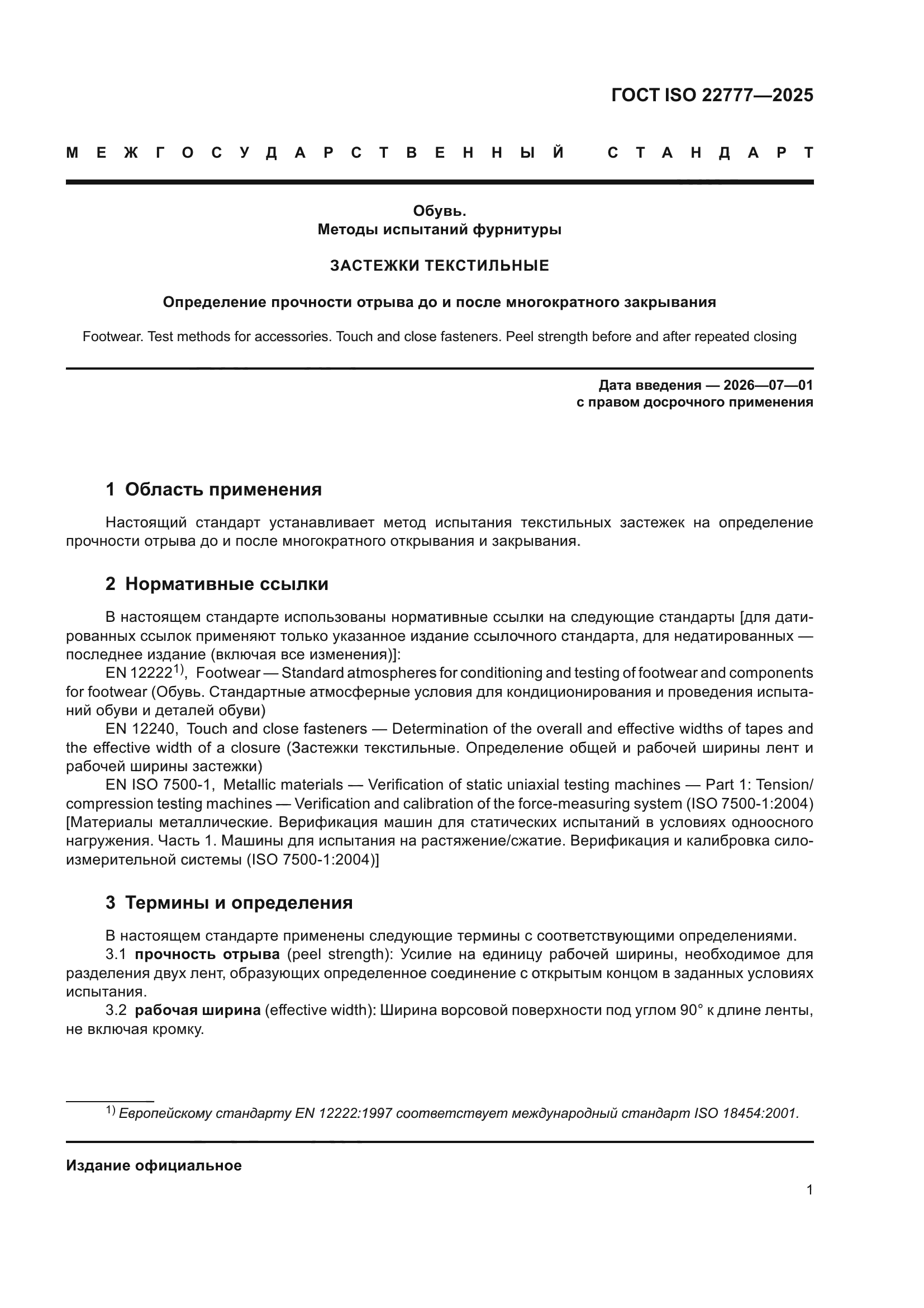 | Название англ.: | Footwear. Test methods for accessories. Touch and close fasteners. Peel strength before and after repeated closing |