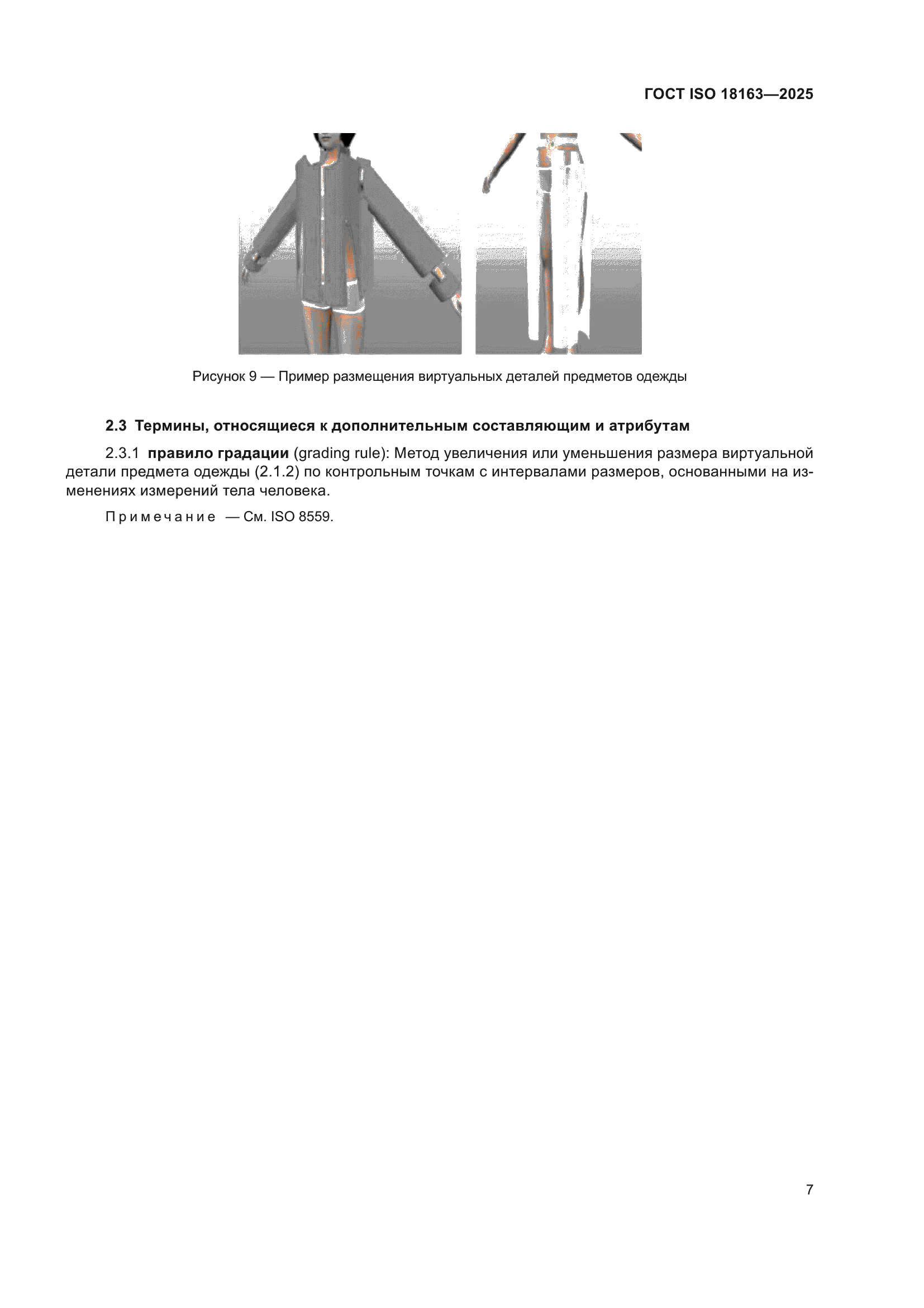| Название рус.: | Одежда. Цифровая примерка. Словарь и терминология, используемая для предметов виртуальной одежды | | Название англ.: | Clothing. Digital fittings. Vocabulary and terminology used for the virtual garment | | Дата актуализации текста: | 01.01.2026 | | Дата актуализации описания: | 01.01.2026 | | Дата регистрации: | 30.09.2025 | | Дата издания: | 27.11.2025 | | Дата введения: | 01.07.2026 | | Аутентичен стандартам: | ISO 18163:2016 | | Область применения: | Настоящий стандарт устанавливает термины, которые обычно используются для систем цифровой примерки. Система цифровой примерки включает в себя виртуальный текстильный материал, свойства виртуального текстильного материала, виртуальную деталь предмета одежды, свойства виртуальной детали предмета одежды, виртуальную линию сшивания, виртуальный предмет одежды и виртуальное моделирование виртуального предмета одежды на виртуальной модели тела человека для оценки качества посадки | |