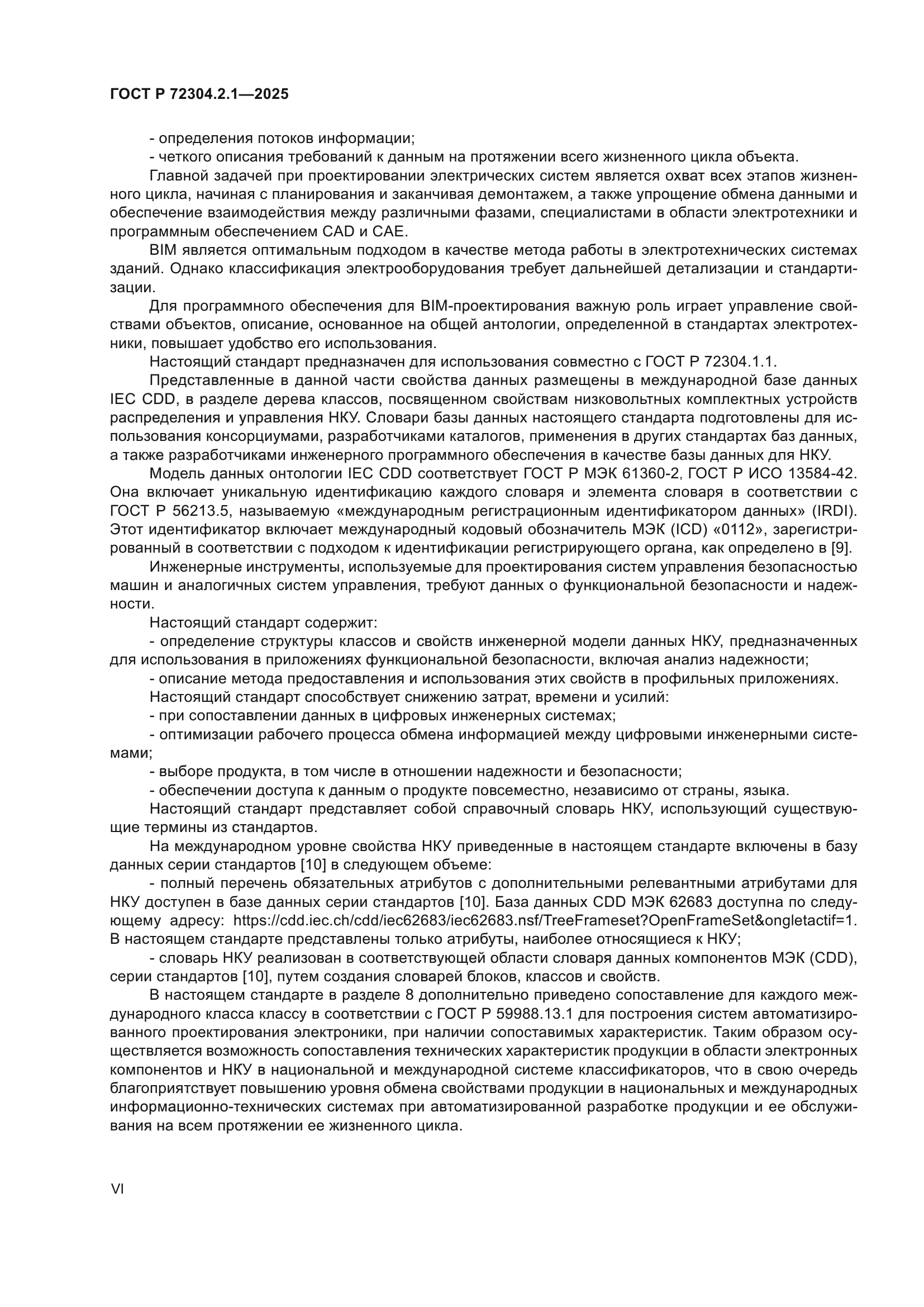 | Область применения: | Целью данного стандарта является определение информационного моделирования зданий (BIM) с учетом физических характеристик и технических параметров низковольтных комплектных устройств распределения и управления (НКУ), предназначенных для использования на этапах строительства здания, предоставления данных для эксплуатации, а также настоящий стандарт содержит описание модели данных функциональной безопасности и надежности для НКУ, используемых цифровыми инженерными системами для проектирования систем электроснабжения, в том числе связанных с обеспечением безопасности, в соответствии с ГОСТ Р МЭК 62061, ГОСТ Р МЭК 61508-2 и ГОСТ ИСО 13849-1, а также для определения надежности электротехнических систем. Настоящий стандарт предназначен для охвата всех типов устанавливаемых в здании НКУ, попадающих под действие серии стандартов на низковольтные комплектные устройства распределения и управления. Шинопроводные системы, определенные ГОСТ IEC 61439-6, рассматриваются для включения в следующее издание |
